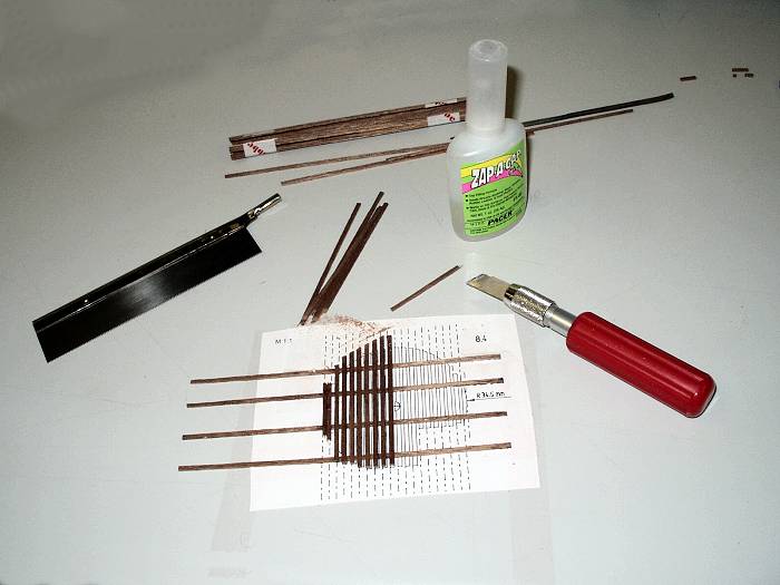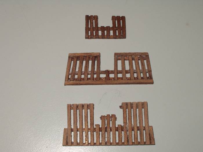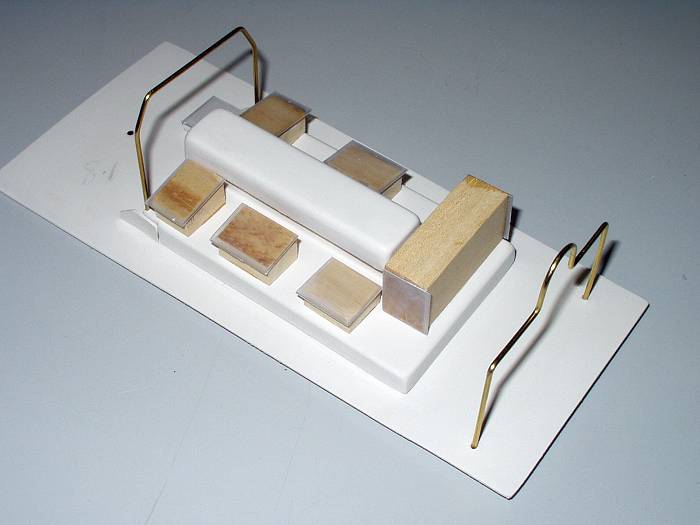 blocks of wood with plastic squares stuck on them to look like hatches and