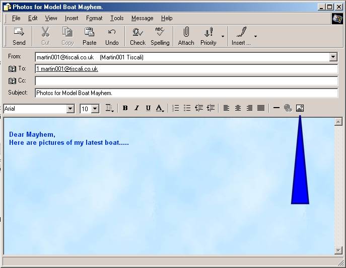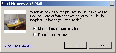 Open Windows Explorer. 2. Find your photographs on your computer. 3. Change view to Thumbnails. 4. Select Photos you want to email. 5. Release the Ctrl key, 7. A Menu should pop up like this... 8. Click OK 9. This will then open up your mail program (