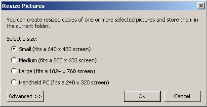 get 2 more options, make sure you DO NOT 7. Select - Medium (fits a 640 x 480 screen ) 8. Click on [ OK ] 9. A copy of the photo (photos) will then appear in the directory named something like PIC1234 (Medium).JPG 10. The new photo (photos) are resize and