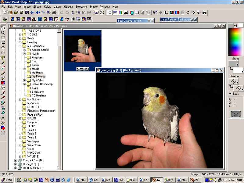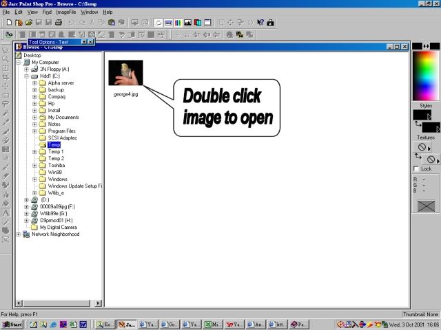 ![]() Use browse icon or File / Browse or Ctrl + B to open up the picture browser. Locate your photo e.g. c:\My Documents\My Pictures |