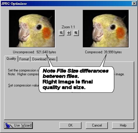 File Size of the photo. Select Jpeg Optimizer - ![]() or File / Export / JPEG Optimizer. |