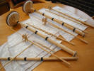 are finished with 50% Satin Poly Varnish, Then sanded with wire wool to