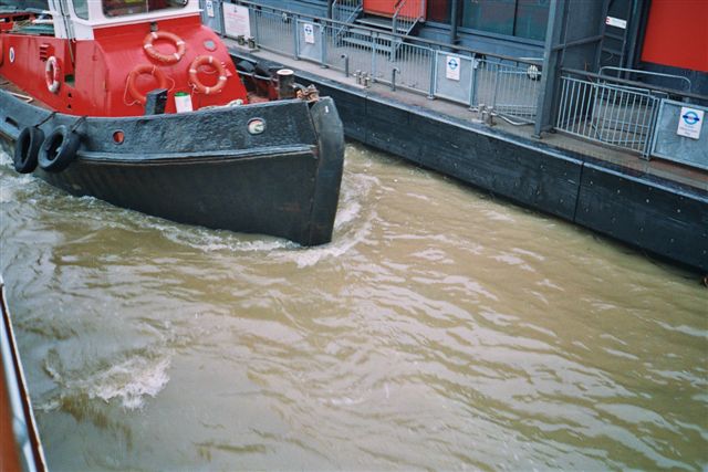 The photos show the Tug Revenge moving us out to mid stream before turning