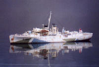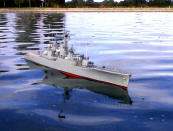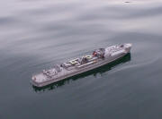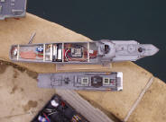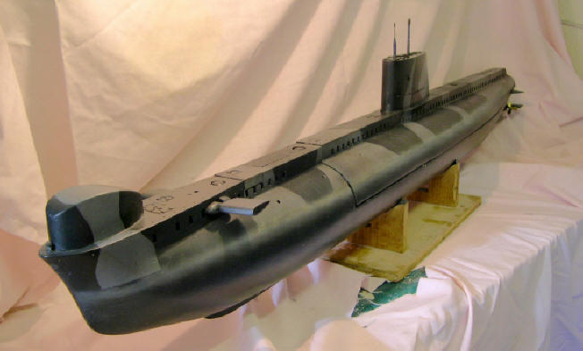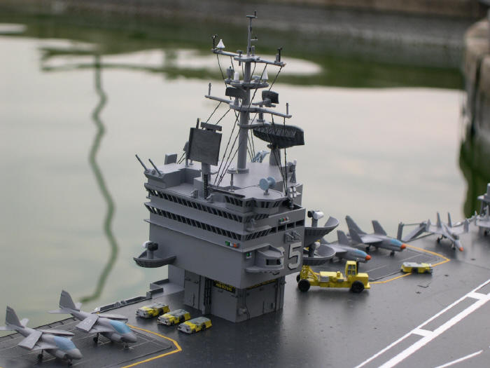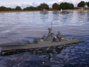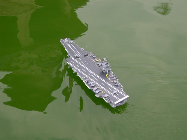 More from the stable that is Holman...."attached are pics of Brian Davison's latest "Plastic Magic" project, to compliment his Missouri, we hope to get some pic's of both together later in the summer. USS Enterprise - the Tamiya plastic Kit, fitted with two low drain motors powered by 7.2 volt nicads. |
