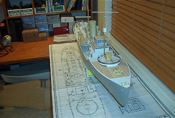 Fleetscale hull with Sirmar fittings. All the super structure was scratch