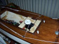 G’day Martin Another launch ay Surrey Park Model Boat Club today and it was a quiet affair without the fanfare, but the size of this lady is very impressive I didn’t have a tape measure on hand to get all the relevant details but have a look at picture number 7 to get an idea of the size (yes it a normal packet of smokes on the deck) there are plans for some railing, a small crane, crayfish pots and people to be added, but I believe it would be possible to put a small child onboard without to many hassles. Powered by a 750 motor spinning a single propeller about 3 inches in diameter she went well but it already looks like she needs to be re-powered as with a direct drive the motor is getting very hot (or you could just put a pot over it and cook the crayfish as they are caught) all in all another brilliant model at the lake, will endeavor to keep you up to date with the project as news comes to hand. Cheers Steve |