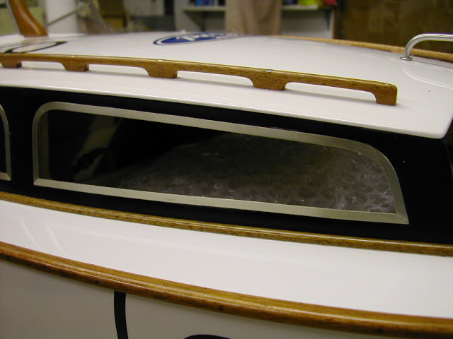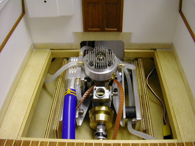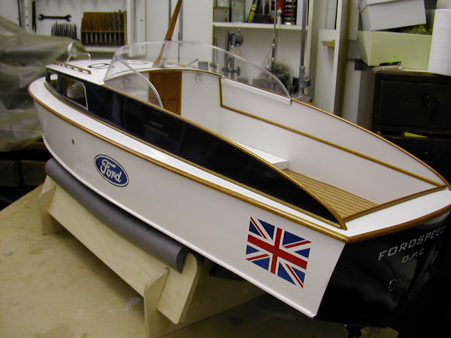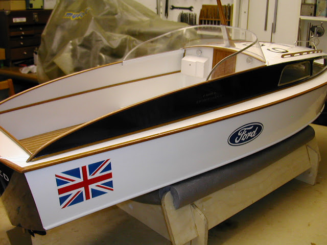 If you have a couple of cheap rudders, I would try narrowing the blade quite a bit, and see what diffence it makes, if no good the rudders are only cheap. Extra ballast seems a shame, as you are adding weight, and slowing the boat down, if you run at a slower speed, and it still handles/turns bad, then that eliminates ballast. Sadly, you might have to move the prop back a bit, and the rudder. Here is a copy of mine pre final paint and set up. its copied from the original plans, but the angle has now been changed, but it gives you an idea where it is in relation to yours. Dont yet have a good photo of it sitting in the water unfortunately, but it is almost identical to yours, at 6kgs all up weight