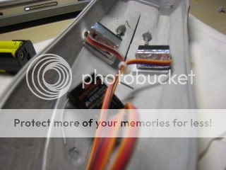 The screws driven by 2 micro servo, a Spektrum 6 ch receiver (I know it's overkill but this is the only one I can find at a low price and small enough) and 4xAAA battery.