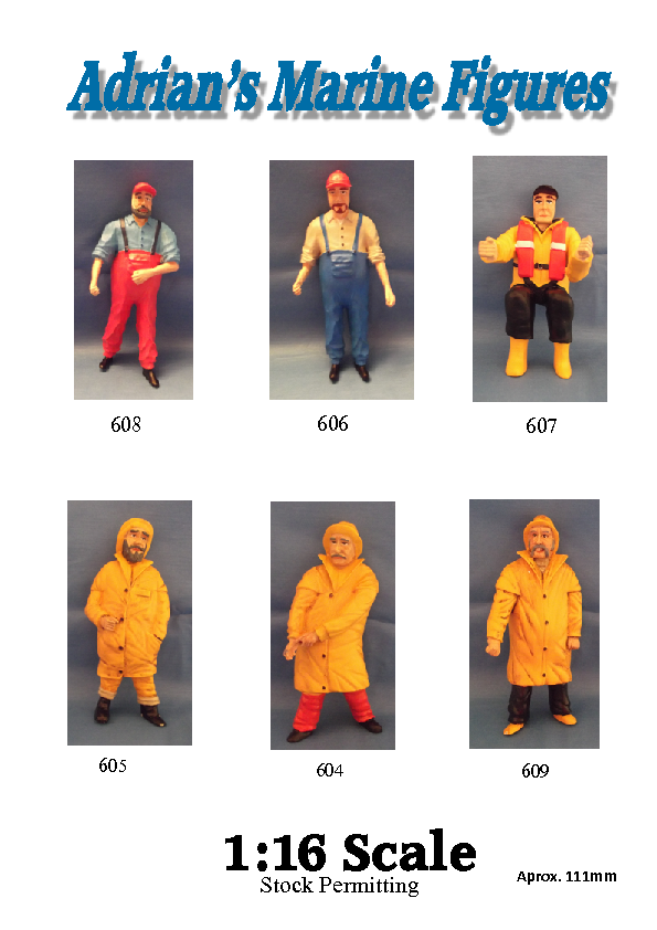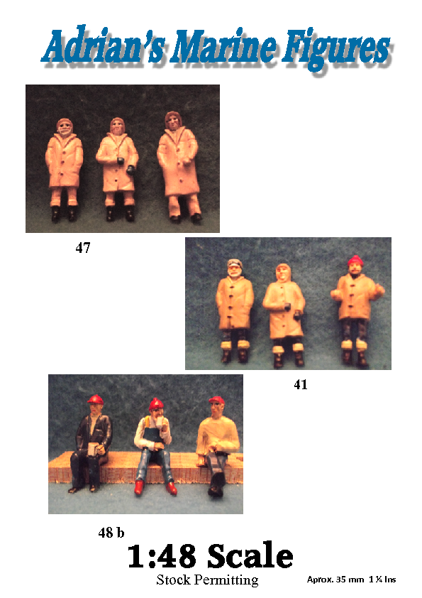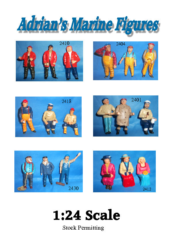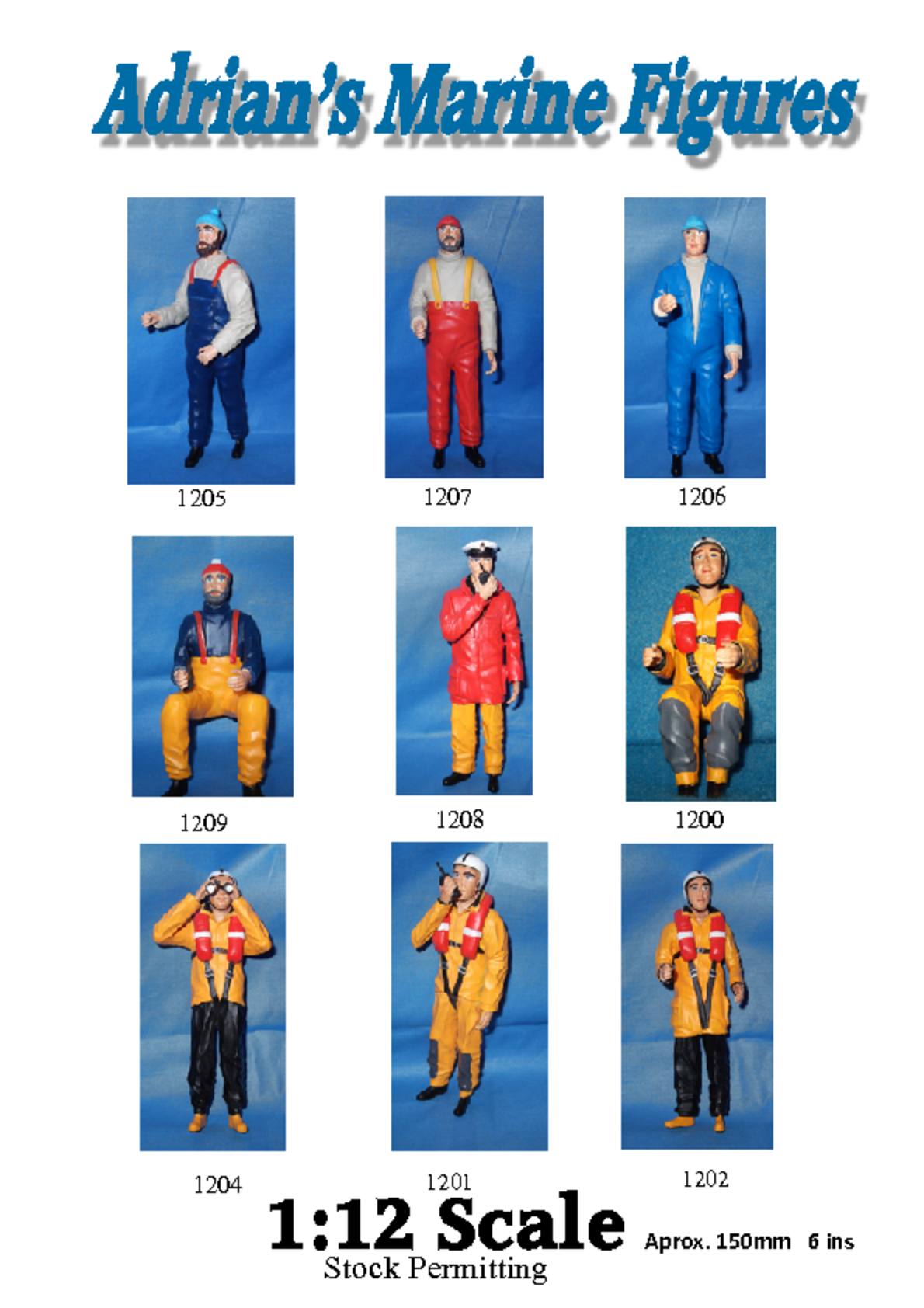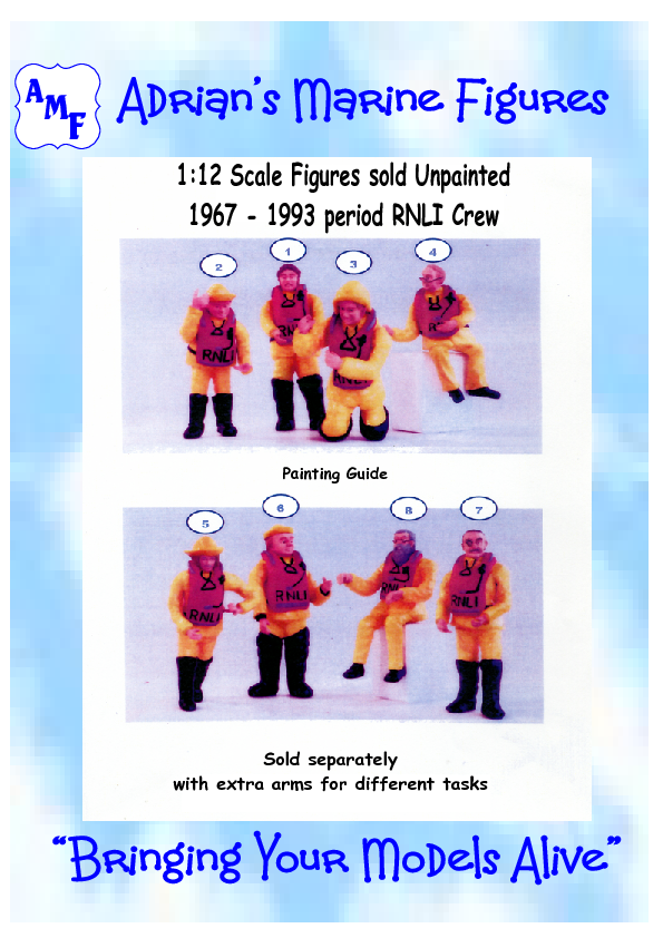 We need you Adrian to start producing good quality figures & crews for our lifeboats in both 1/12 & 1/16 scale,there is No one else that shows an interest in their customers needs & will even answer an email. The market is all yours for the taking. I have personally heard the yours are the best as well. I need two sets right now for my lifeboats and two sets as well for my two tugs, Mick B.
