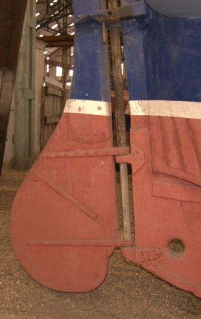 the rudder, made from solid timber probably weighed several hundredweight and so sat where she fell, unless hauled up that 12"or so by brute force.