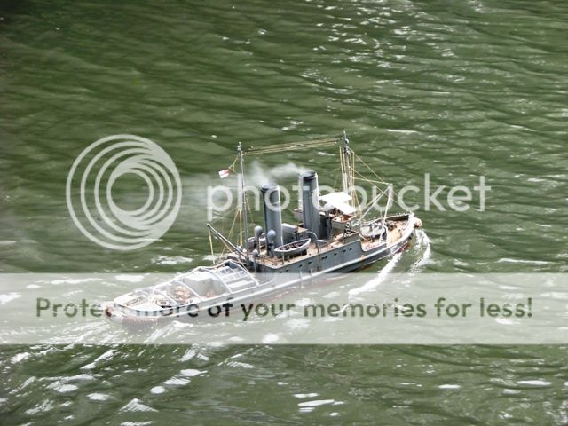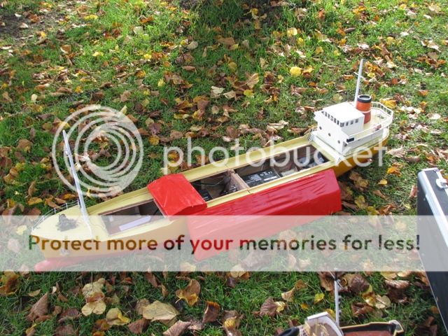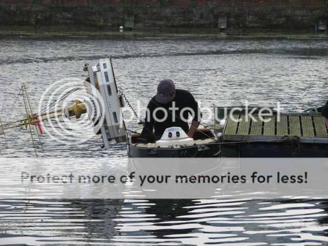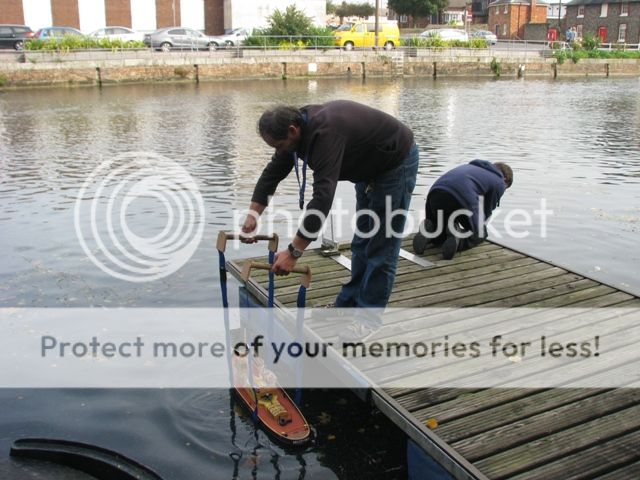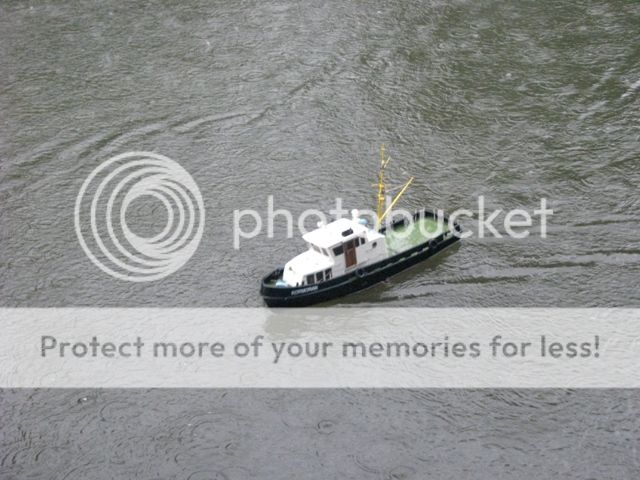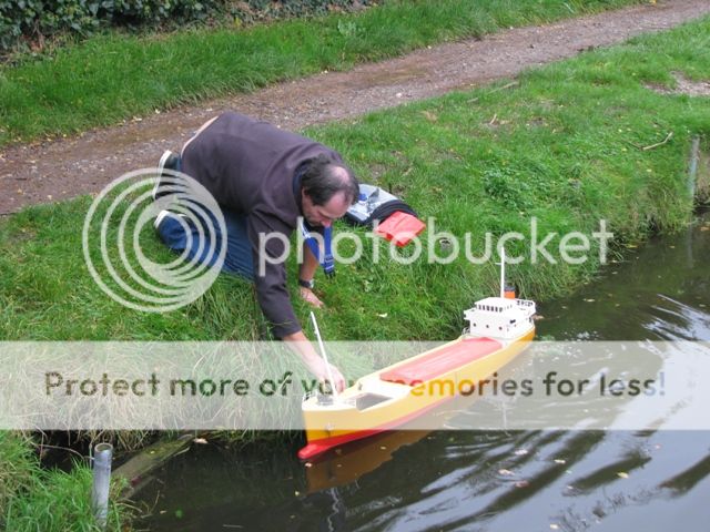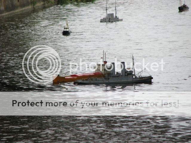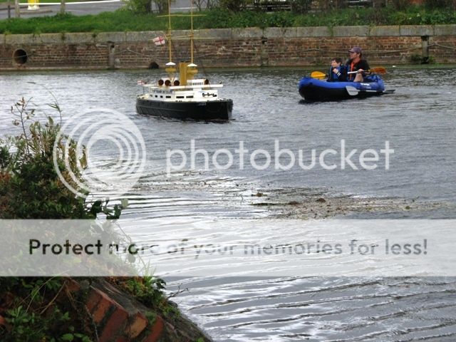 thank you jack , i think the skipper of the tug boat need some new glasses , not only has he managed to push your boat underwater , he also hit my coaster at full astern while he was under the hunston bridge , although the forward section of my hull was 3/4 full of water at the turn around point it was drained and we put back to "sea " with less forward ballast for the return leg  , the damage sustained to my bullbose bow has resulted in the vessel taking on some water ( thank god for full height watertight bulkheads ) it managed the return leg without quite as much liquid ballast . for those who would like a challenge , we are planning to have another bash around the christmas holiday period , and again in early spring , the rescue boat is kindly provided by portsmouth model boat display team , and manned by phill , one of the members . with a cafe and toilets at the start / finish what reason do you have for not joining in ?????? jon