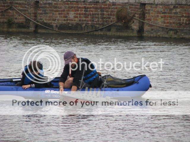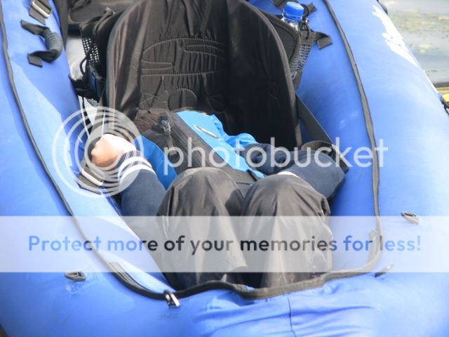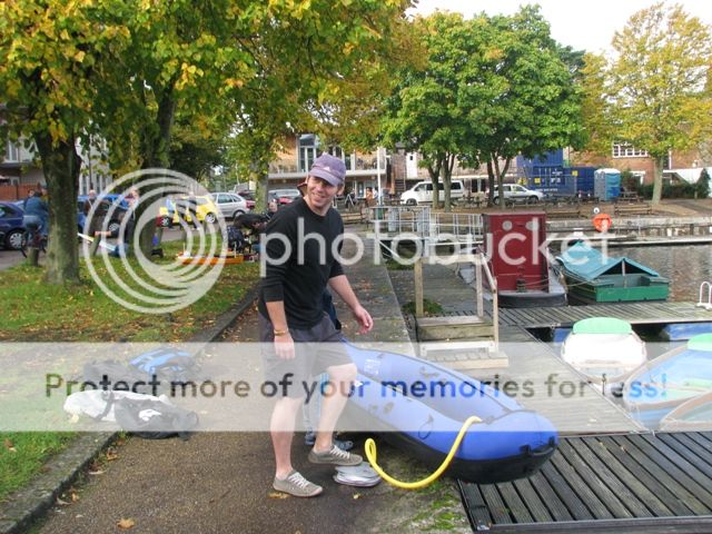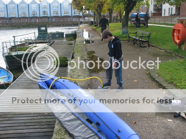 The rescue canoe being inflated. A great way to keep children occupied and save your legs from aching later!