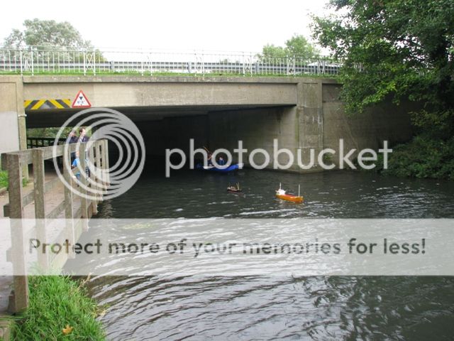 Everyone stopped at either the jetties before the bridge or just after to have a spot of lunch and do essential maintanence on their models, like pumping water out and replacing batteries where appropriate. It was decided that we wouldn't go on any further down the canal because it looked like the weather was going to turn against us, despite the calm conditions here.