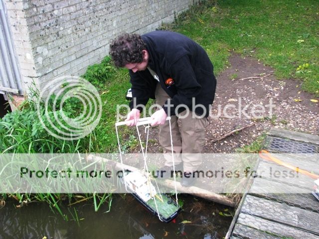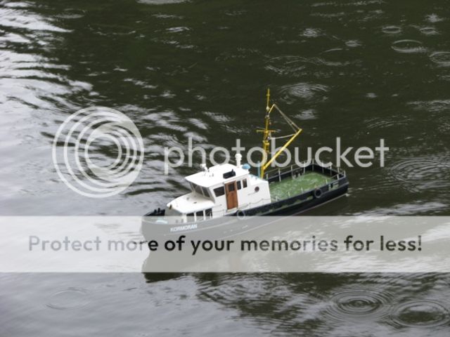 My boat, a Robbe Kormoran decided to develop a random motor fault which almost stopped its endurance run at the starting blocks, but a little tinkering got it going again. The journey out was relatively uneventful, save for floating leaves and muck in the still areas clogging up everyone's propellers.