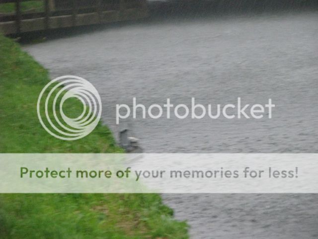 The rain has started come down more heavily now, although here at least the canal is nearly as calm as a millpond.