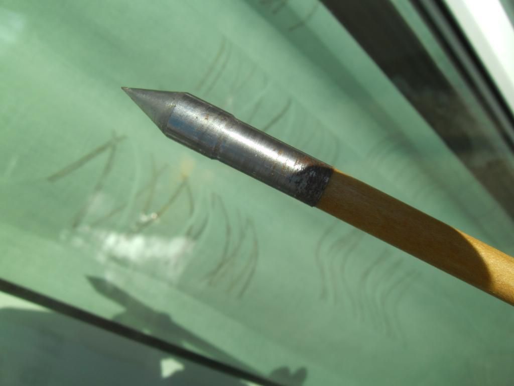 tool used to put on arrow tip basically shaves off enough wood with friction to make tip fit
