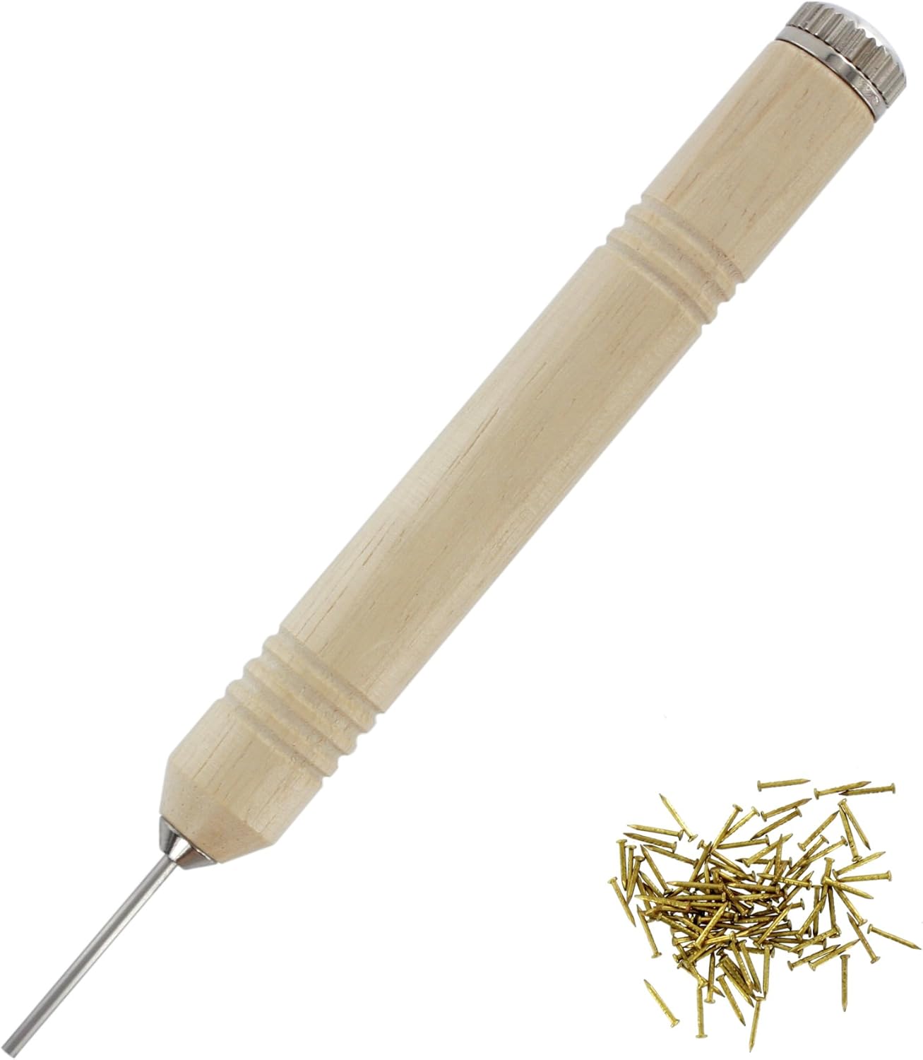 I like using a micro drill in the dremel to make a pilot hole , especially if I am fixing into a plywood frame . for a 0.7mm pin I use a 0.6mm drill then push it home with the long nose pliers . Those little drills are pretty cheap and if you keep your hand steady you will not break too many.  On my current build a pack of 10 got me through 3,000 pins