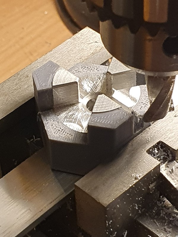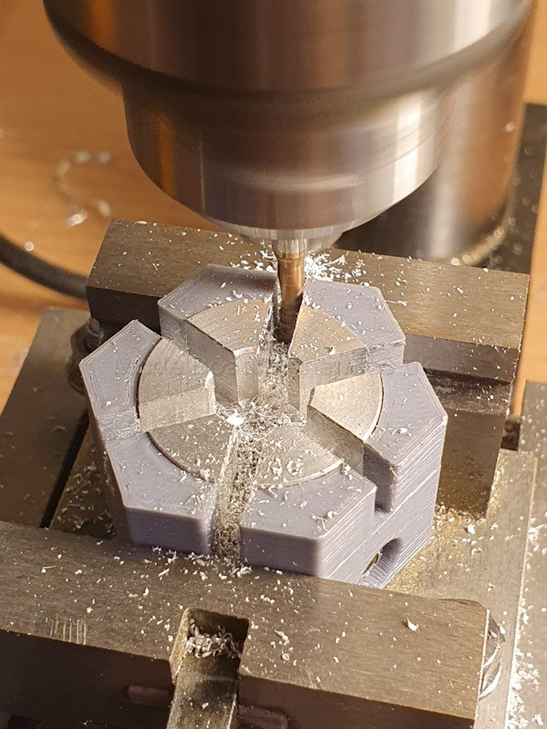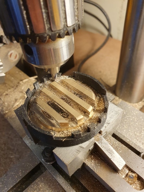 The flats on the underside of the guides are to help mounting in the mill. Then a 6mm end mill to take out the two edge cuts, and a 4mm to start on the centre cuts.