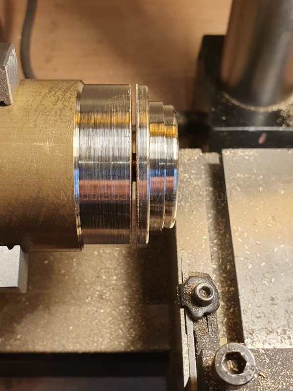 So, here's the 50mm bar with tailstock centre to keep it under control, I don't have a thrust pad... So did take it slowly.