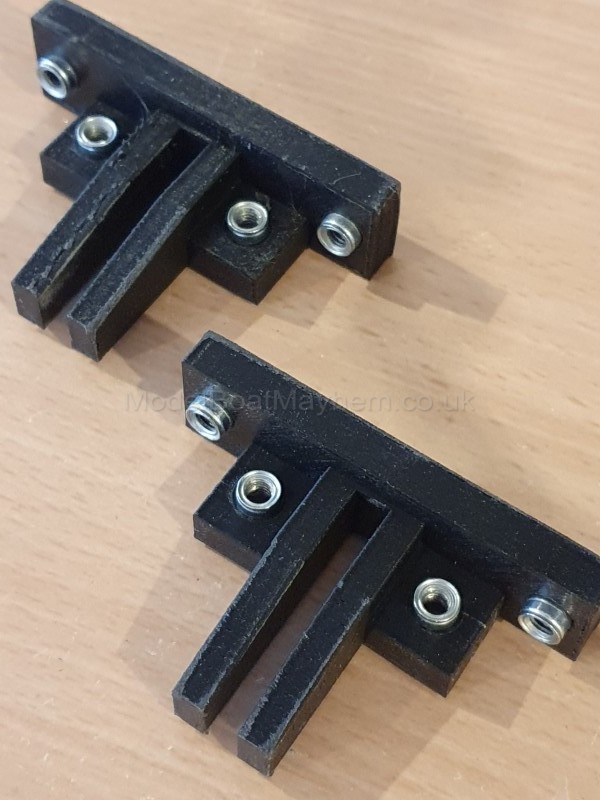 In other news... I produced a few versions of these 3D printed ESC case mounts before getting it right. They sit on the keel and bolt through two of the frames so the ESC case has a firm base. I will be using a thin piece of foam to isolate the case from the mount so no sound vibrations are passed to the hull, or are at least reduced.